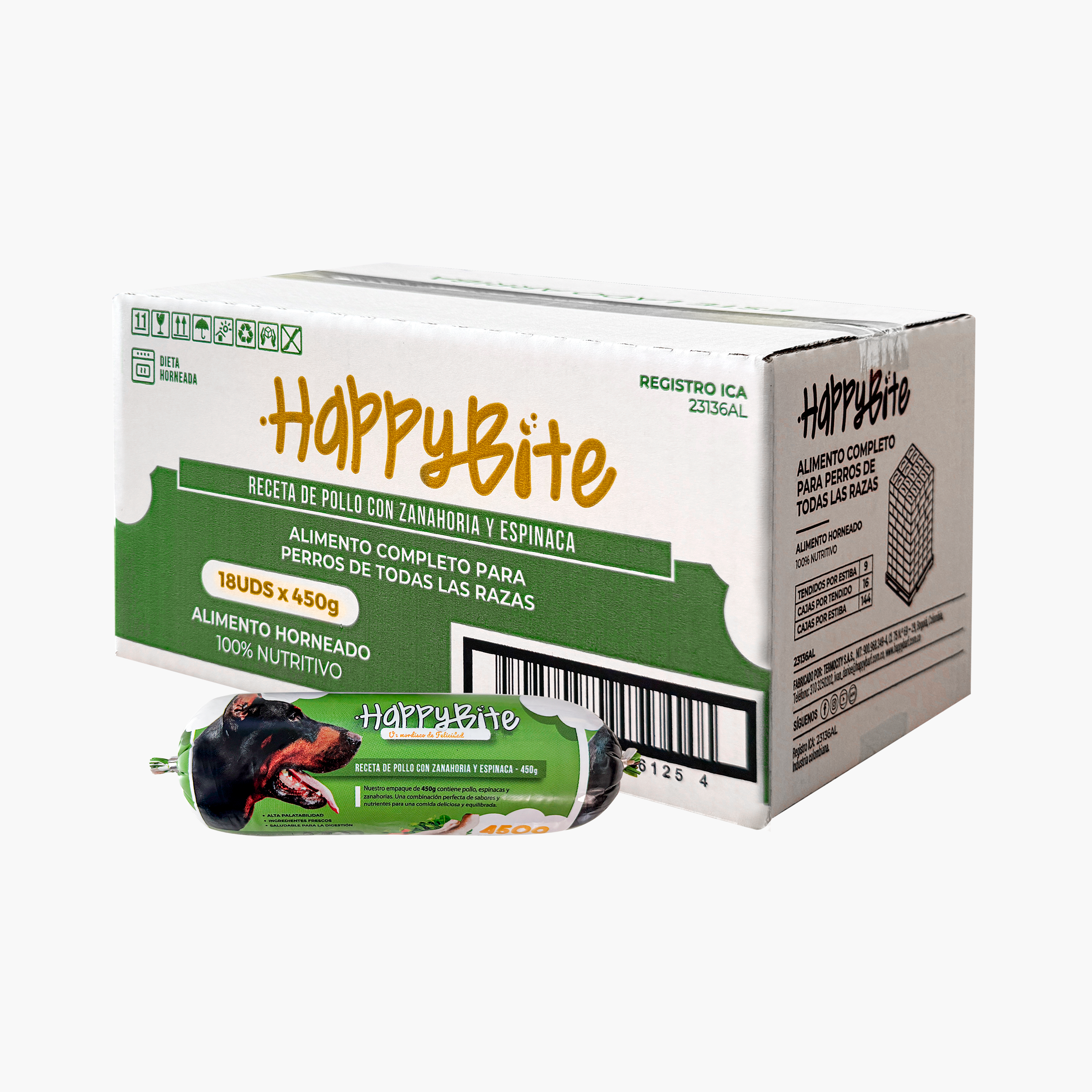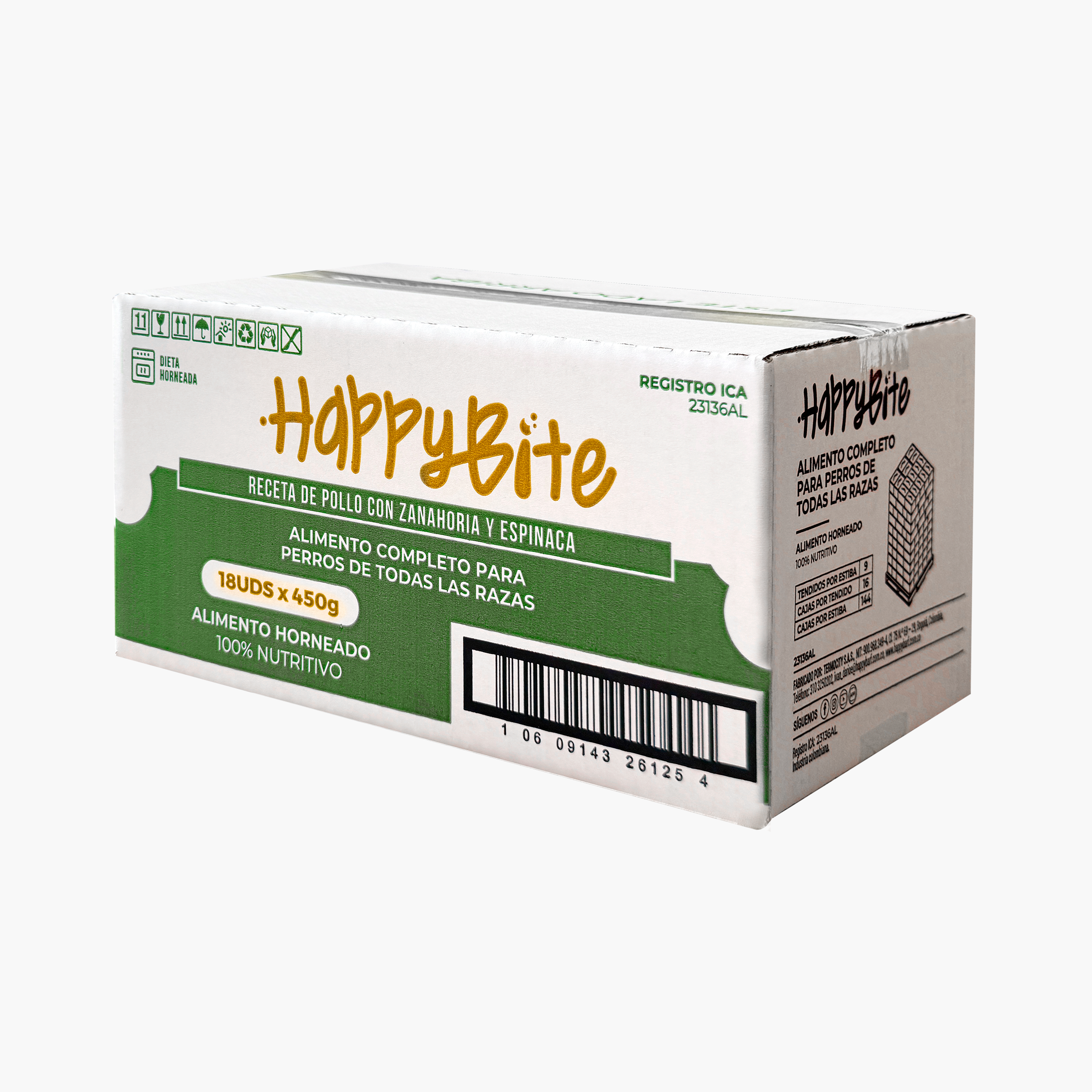 HappyBite Pollo | 450gr | Caja 18 Unid.